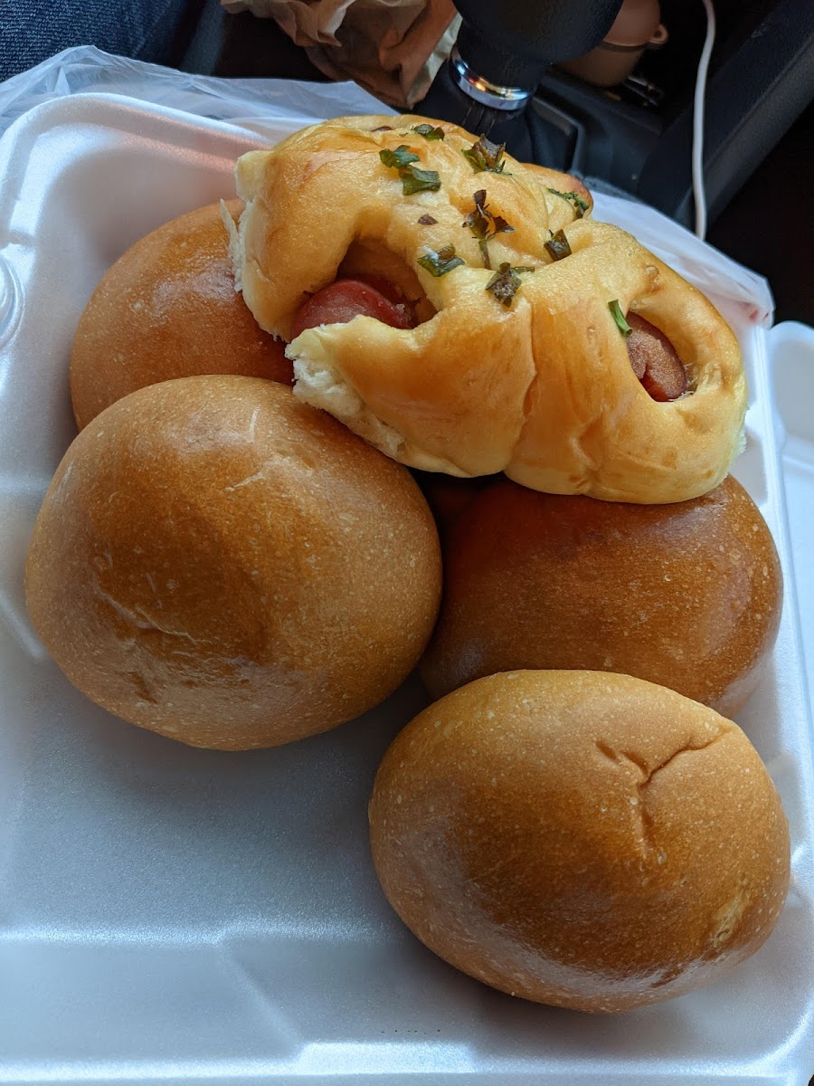 Sunday (3/17/24) morning drive to Sac to see our fam and we made a stop. It was early, 9/930, no line, well maybe 2 ahead of me but it moved quickly. The ladies were working hard and quick. We bought our usual and added the mochi biscuit with red bean, hot dog bun, baked chicken bun and egg tart. * Mochi biscuit with red bean - soft, chewy texture with the right amount of red bean. Not too sweet. * Hot dog bun was good. The shape and design made getting a piece of hot dog and bun combo perfect. It was a favorite (should have bought more) * Baked chicken bun was tasty. Wish there was a little more meat to even out the meat to bun ratio. Other than that, it was good. Recommend if you're looking for a non pork option. * Egg tart is another favorite. Flaky crust, lots of egg mixture that's not too sweet. It's a bit on the firm side, but I let it sit out to room temp and it softens it up a little more for a creamier texture Keep it up! Will definitely keep coming back and trying other goods.